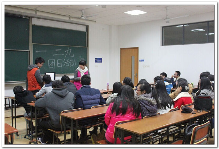 12月7日晚,电子信息工程学院0413008团支部与0413009团支部同学在南航将军路校区共同举办了以一二·九爱国主义教育为主题的团日活动。本次活动旨在让同学们铭记历史,增强同学们的爱国热情,深化社会主义核心价值观。 活动伊始,主持人就一二·九抗日救亡运动进行了回顾,详细讲述了一二·九运动发生的背景及意义所在。在座同学认真聆听之余也积极发表自己的看法。接下来是欣赏教育视频的环节,影像资料生动地重现了1935年12月9日那场由中国青年发起的反分裂反割据,强烈要求保全祖国领土完整的爱国运动,视频深刻地揭露了日本帝国主义侵略中国、吞并华北的阴谋。之后,便进入了一二·九知识竞答环节。竞答环节所涉及的问题答案皆出自以上两环节,既是对同学们听讲状况的考核,也是为了巩固所学,让爱国知识深入人心。同学们开动脑筋,踊跃回答,积极抢答,全场气氛热烈。这也为下一环节的进行打下良好基础,主持人邀请现场的同学自由表达,大家各自谈了谈对一二·九的想法和心中深深的感触,更有同学交流曾经参加一二·九爱国主题教育活动的经历。