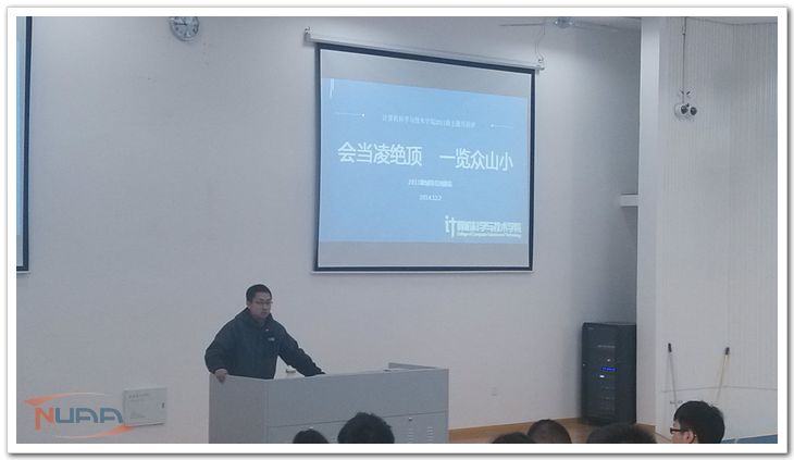 12月4日,计算机学院2011级专题月讲评暨毕业设计动员大会在明故宫校区13号楼举行,学院物联网系主任孙涵老师、2011级辅导员刘彦辰以及2011级全体学生参加此次会议。