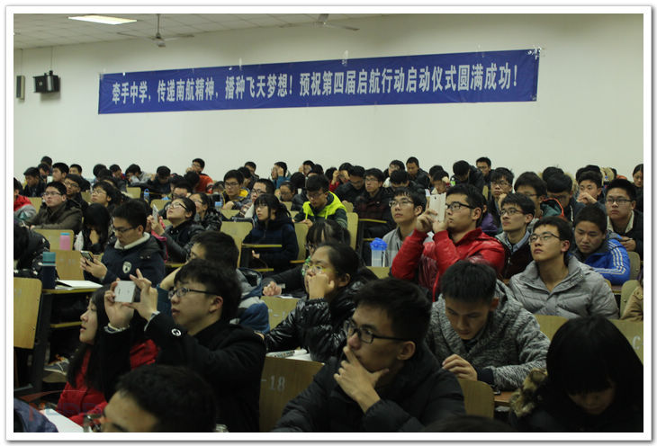 据悉,“启航行动”——南航学子中学行活动,是基于南航的“航空、航天、民航”特色,鼓励南航学子返回中学母校,弘扬南航精神,宣传南航文化和教育理念,与中学母校的师生们展开互动交流,进而促进我校与中学之间的交流与合作。启航行动已开展三年,参与活动的团队累计500余支,踏过全国30多个省市,受众远超10万人。今年的启航行动将在寒假期间正式拉开序幕。届时, 170多支队伍将奔向全国各地,与莘莘学子零距离接触,为我校2015年招生宣传工作打好前战。