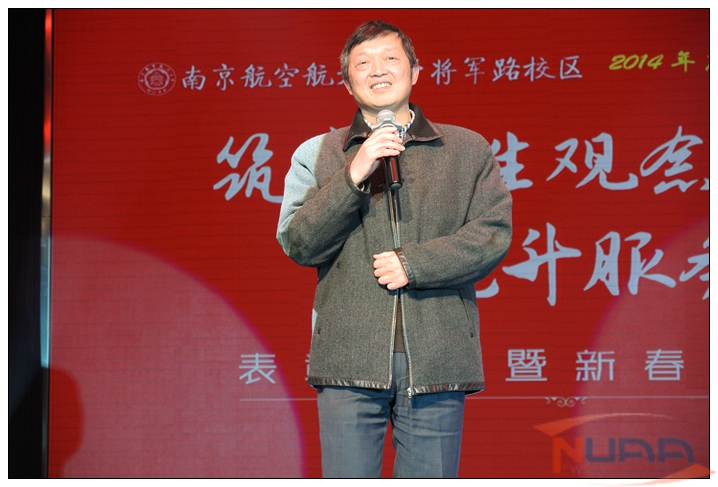 最后副校长吴庆宪在新年致辞中说,看着视频中先进集体和个人的事迹深受感动。校区的发展离不开一线员工的付出,校区在大家的共同努力下,蓬勃发展,越来越好。2015年南部生活区也将投入使用,校区面临从基础建设为主向升级完善为主过渡的新变化和校区发展新常态。他希望大家不断改变观念,提升工作,能够继续向先进学习,继续提升服务,将校区建设的更好,为学校深化综合改革创造好的条件。