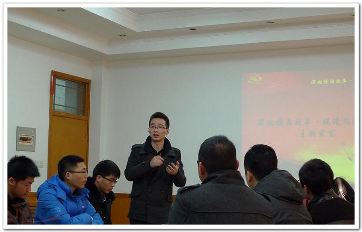 遵照学校党委“党组字〔2008〕24号文件”关于党建工作“三个一”联系制度的工作部署,1月9日下午,以深入学习探讨校内综合改革为主题,信息中心党支部与计算机科学与技术学院模式识别所16141党支部、数据所16143党支部及网络所16144党支部联合举办了主题为“深化校内改革 促进内涵发展”的“三个一”联系活动。模式识别所16141党支部书记赵明哲首先介绍了此次联谊活动的主题和流程。信息中心党支部书记石景山介绍了信息中心支部的党员基本情况和工作近况,并对党员同学们积极准备和参与此次活动表示欢迎与感谢。