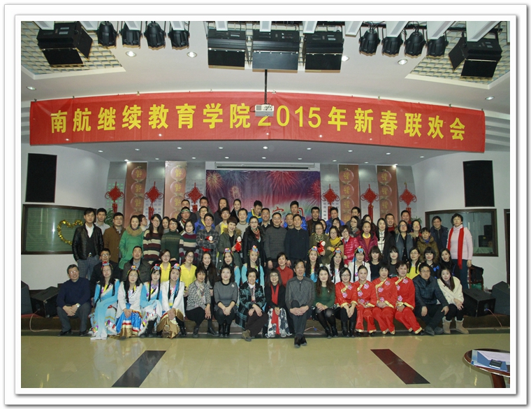 “物换星移辞旧岁,风和日丽迎新春”。1月16日下午,继续教育学院全体教职工及合作单位代表欢聚一堂,在西苑活动中心五楼多功能厅举行了2015新春联欢会。 学院党委书记聂东林老师向大家致新年祝辞。他说:“在学校党委和行政的正确领导下,学院的各项工作取得较好的成绩,2014年,学院确定为“规范管理年”,各部门加强规范管理工作,老师们辛勤耕耘,自考部、成教部等业务部门做好服务创新工作,教学质量明显提升;自考部荣获江苏省高等教育自学考试先进集体称号,学院推进继续教育教学改革专项课题研究工作,有7位老师顺利结题;培训工作高质量完成培训任务,开辟新的领域;学生活动丰富多彩,立意高,参与面大,成效显著;后勤工作强化服务意识,科学分配住宿资源,开辟卫桥住宿点,缓解住宿压力;各项招生工作平稳有序,都取得好的成绩;学院完成了新一轮岗位考核、岗位评聘工作,机关支部获得学校2012-2014年度先进基层党支部荣誉称号,这也是支部连续第五次获得该荣誉称号。以学院首届教职工运动会为特色的学院文化活动广泛开展,参加校工会的各项活动都获得奖项;技能合作单位能够按照学院的总体要求,在招生、技能教学和就业基地建设等方面都付出了很大的努力,取得了长足的进步。2015年是学校全面实施综合改革的第一年,将任务极其繁重,我相信只要我们齐心协力,加强团结,顾全大局,着眼未来,积极参与,一定会取得更大的成绩”。 联欢会在《开门红》欢快喜庆的舞步中拉开了帷幕,让人仿佛置身中央电视台的除夕晚会。由王勇和陈圆平老师带来的相声《我最爱的人》,以学院教工和2014年学院的一些活动为背景,进行了艺术的夸张和诙谐演绎,逗得大家捧腹大笑。自考部的双簧舞蹈“天竺少女”,从节目的表现形式,到服装的购置、道具的制作、动作的配合,都新颖别致,令人称赞。应用技术系的藏族舞蹈《北京的金山上》,让我们看到一群藏族同胞所带来的火热与激情,台下的观众忍不住竖起大拇指喊上一句“扎西得勒!”。应用外语系的短剧《忘我的一天》,用哑剧的形式,通过教室、食堂、班车候车室等地点的几个故事,展现了学院普通老师的一天,引起大家的共鸣。机关工会小组12人的诗朗诵《我的祖国》,以大气磅礴的气势歌颂和赞美我们伟大的祖国。成教部表演之前要求关灯、拉窗帘,让人好生期待,随后看到他们跟着音乐,双手舞动亮闪闪的荧光棒,跳起青春激昂、活力十足的舞蹈,带动了全场节奏整齐、幸福的掌声。合作单位的代表也献上歌曲《听海》、《真心英雄》、《父亲》和《原来你也在这里》,赢得大家的欢呼。联欢会在邹蓉老师领唱的歌曲《难忘今宵》中划上圆满的句号。