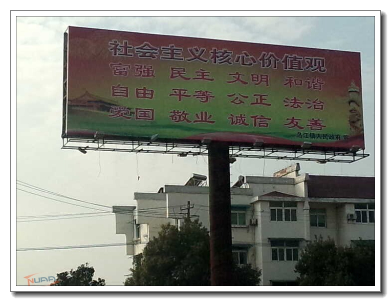 比如说“爱国”,周丹发说在信阳市的一条很长的街道上,街道两旁都悬挂小国旗。在南阳市一个宣传价社会主义核心价值观的建筑物下,一名普通的市民深情并茂地向周丹发谈了自己对这24字的理解。