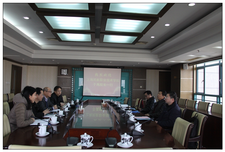 2月11日上午,上海民航职业技术学院院长于再、副院长孙暄、教务处长王继华等一行3人来访南航,调研人才队伍建设情况,副校长黄志球在综合楼820会议室会见来宾,人事处处长龚华军、副处长张启钱、祖丽莉等同志一同参加会谈。 黄志球对上海民航职业技术学院一行的来访表示了热烈欢迎,并向来宾介绍了南航人事制度、队伍建设等方面的情况。于再院长对南航的热情接待表示感谢,并希望加强与南航人才队伍建设方面的合作。双方就人才队伍建设方面的相关问题进行了交流与探讨。 会后,上海民航职业技术学院一行参观了南航能源与动力学院。