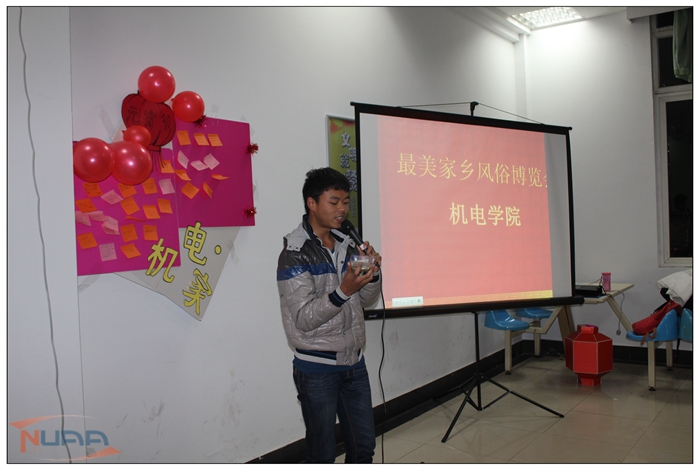 本次活动的主题是“机电•家”,意即通过丰富的师生互动,营造机电一家的氛围,增强同学的归属感、凝聚力。活动的第一个环节是“乡韵机电•最美家乡情”,琳琅满目、各具特色的家乡特产展现了各地的文化特质与民俗风情,同学们穿梭于特产展览会,品尝着家乡特产,领略着不同文化的魅力。14级的郑之发、王嘉琦、王力同学更是现场展示了他们家乡的春节习俗,让在场同学更多了解了别具一格的家乡美。