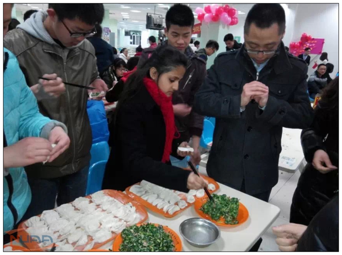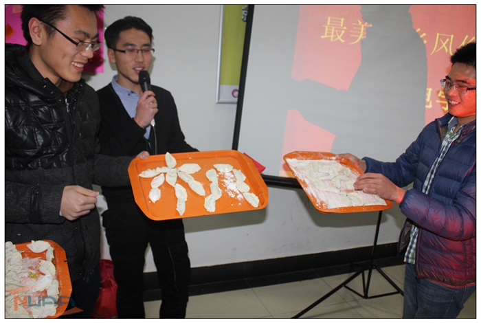 最美家乡展示环节之后,精彩纷呈、各显神通的师生包饺子活动随即开始。各位老师分别作为队员加入到九组包饺子小队中,与学生一起包饺子,话家常,现场气氛十分热烈。包完饺子后,各小队分别上台展示了师生共同努力的成果,有的小队将饺子摆出机电、福等式样,向在场师生献上了最美的元宵节祝福,有的小队则充分发挥对饺子的想象力,任性地包出了各种奇特的饺子。之后,师生们一起品尝了汤圆与自己的劳动成果,喜悦之情洋溢在每一张灿烂的笑脸上。