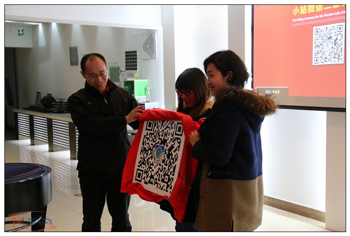 参观中,校团委副书记方正和管祎应邀为小站二维码揭牌。借此机会,小站还进行了2015年度小站重点工作之一---“疯狂物理—创意实验挑战赛”的宣传和推介。