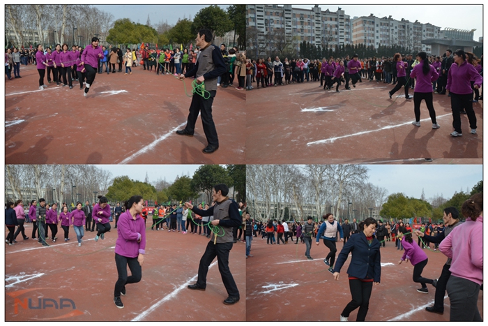 3月13日下午,南京航空航天大学举行了“绳舞飞扬,放飞心灵”庆祝“三八”节女教职工跳绳大赛,后勤集团两支代表队在全校20余支参赛队伍中脱颖而出,以优异的成绩荣获一个特等奖,一个一等奖,包揽比赛一二名。 下午2时30分,比赛正式开始,此次跳绳比赛分组制,每回合有两支队伍进行比赛,每队的比赛时常为2分钟。后勤集团两支代表队在A区第三组和第四组,后勤集团队员们在观看其他队伍比赛时也在暗暗鼓劲,希望能够超越前队,战胜自我。哨声响起,后勤的第一支代表队开始比赛,只见他们沉着冷静,整齐紧凑的跳跃,嘹亮的口号,飞快的绳子,围观群众都不由自主地跟着默数、加油。后勤一队的比赛结束哨声响起,后勤集团成员们止不住的兴奋与激动,188个。纵观之前比赛队伍,最多的仅有155个,或许已经意味着后勤能够提前锁定冠军了。随后上场的后勤二队不甘示弱,冷静应战,力争超越自我,在最后时刻他们顶住压力,192个,不仅仅是后勤的拉拉队,全校的参赛队伍都为这个数字而沸腾了,大家都投来了钦佩的目光,操场上响起了祝贺的掌声,冠军已然成为后勤的囊中之物。后勤集团参赛的两支队伍再一次为集团带来一份象征着团结的荣耀。