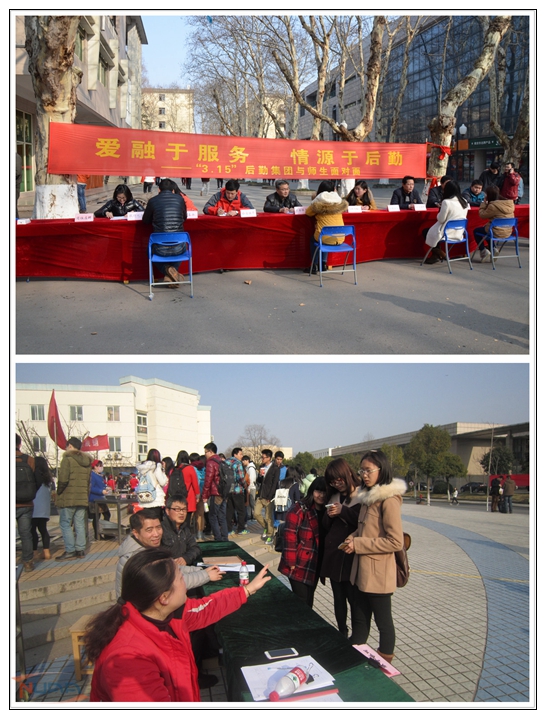 阳春三月,春意盎然,我们又迎来一年一度的“3.15”国际消费者权益日。 3月12~16日,后勤集团举办的“爱融于服务、情源于后勤--3.15后勤集团与师生面对面”系列活动在两校区同时展开。