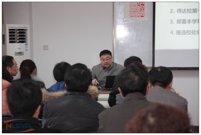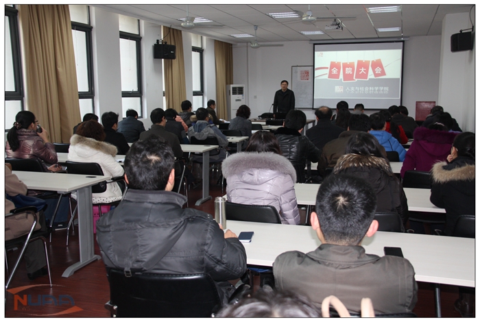 3月12日下午,人文学院召开了新学期全院教职工大会,传达校党委扩大会议精神,部署新学期工作。会议由学院党委书记张启钱主持,全院教职工参加了大会。 会上,张启钱传达了校第十五届党委第十三次全委(扩大)会议精神。2015年学校将全力推进综合改革,他希望全院师生共怀愿景和期望,紧抓机遇,将学院整体发展与教师个人发展相结合,坚定深化改革的信念,贯彻落实各项工作,推动学院稳步向前发展。