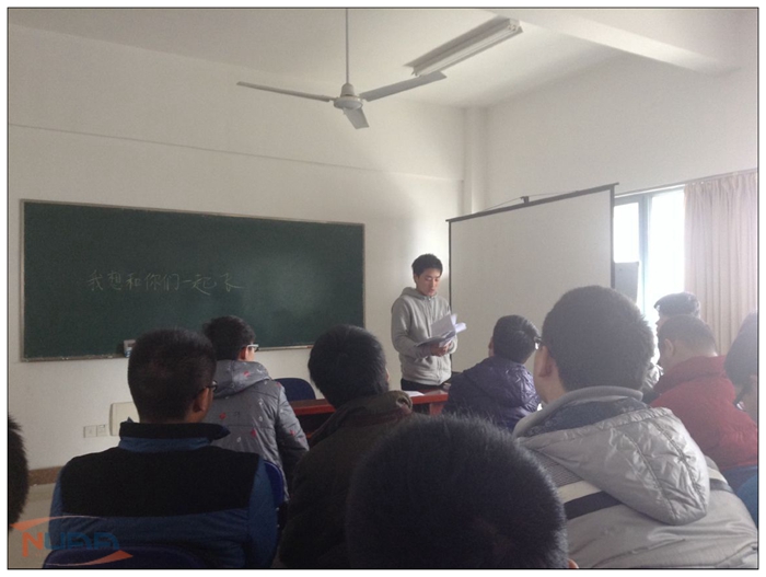 开学以来,理学院寒假作业交流分享会在将军路校区如火如荼的进行着。此次交流会旨在对同学们的寒假“五个一”作业进行总结分享,帮助大家找寻新学期的目标,扬起大学新生活的风帆。14级辅导员黄博伟出席了交流会。 大会以各班班长的发言引入主题,他们总结了各班前不久以班级为单位进行的假期分享交流会,阐述了寒假生活的多彩和芬芳。寒假“五个一”作业包括读一本好书,做一次实践,做一次家务,写一篇总结,拍一组寒假生活照片。正如刘泽阳同学说,假期是回顾曾经,正视自己规划新学年的绝佳时期,也是提升自己的好机会。