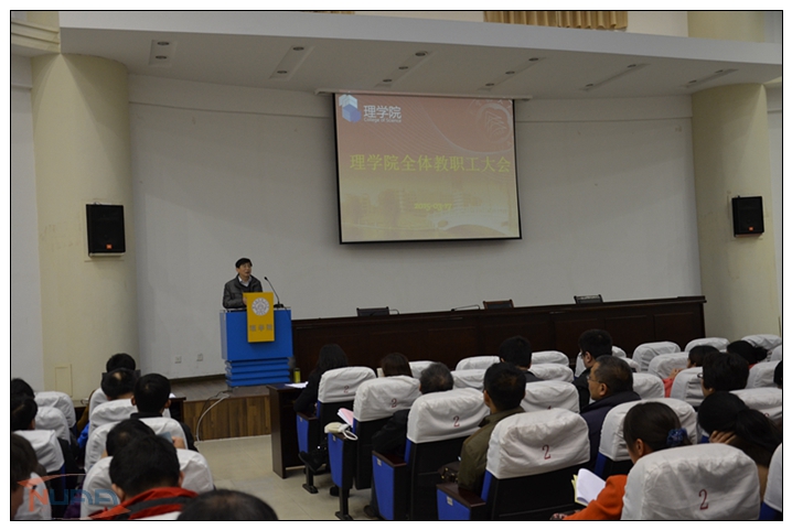 3月17日下午,理学院在学院报告厅召开全体教职工大会,大会传达学习了学校第十五届党委第十三次全委(扩大)会议精神,部署了2015年主要工作,会议由院党委书记余春玲主持。 施大宁院长首先传达了学校第十五届党委第十三次全委(扩大)会议精神。从教学、科研、学科建设和人才引进等方面总结了去年的工作,结合学校第十五届委员会第十三次全委(扩大)会议工作报告对学院2015年的重点工作进行了布置。他指出做好本科教学工作的审核评估是今年的工作重点,并加大人才引进力度。同时,针对学院教学中出现的一些问题进一步明确了要求,希望全院教职工以饱满的热情和昂扬的斗志迎接新学期,把握改革发展大局,共享学校的发展成果。 院党委书记余春玲要求教职工进一步坚定改革信心,立足本职工作,齐心协力共谋学院新发展。 会上还对获得2014年教学优秀奖的老师进行了表彰。随后,进行了校处级后备干部的民主推荐,对学院数学系行政领导班子进行了民主推荐。 ![]() ![]()