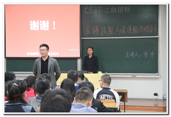2015年3月22日晚,电子信息工程学院二级团校选修课之新媒体与宣传技能培训在6101召开。本次培训邀请到了校团委老师万千主讲,到场的嘉宾还有电子信息工程学院团委书记张晓燕,参加本次培训的主要是来自学院各年级、各组织负责宣传的同学。 团委老师万千以“让世界认识你”这一新颖独特的题目吸引了所有人的眼球。简短的介绍之后,万千以一张搞笑又犀利的“宣传狗”的图片开题,幽默的点出了宣传工作的特点和难处,自嘲式的描述也引起了全场同学的共鸣。接着,万千结合自己多年来从事宣传工作的经验就“如何做好宣传工作”的问题展开了详尽的讲解,他风趣的演讲风格让全场笑声不断,丰富而精彩的内容更给同学们留下了深刻的印象。此外,万千还以团委几条成功的微信推送为例,让大家了解了成功案例背后的故事,宣传工作的“四张王牌”的理论更是一语中的。培训的最后,万千还向同学们分享了自己对青春、对大学的看法,并为同学们送上“养浩然之气,做阳光的人”的寄语。 这次选修课在同学们的热烈掌声中落下帷幕,这次培训使同学们对宣传工作有了更深刻的了解,也给同学们的宣传工作带来了很多全新的idea。相信经过这次培训,大家做宣传工作一定会更加得心应手,游刃有余! ![]() |