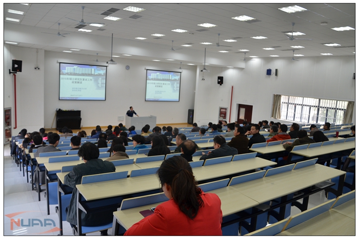 3月23号下午,自动化学院2015年硕士研究生招生复试政策宣讲会在13号楼报告厅召开。学院除出差、参与毕业生答辩工作、上课的硕士生导师未能参会,其余硕导及复试组相关工作人员均悉数参加。赖际舟副院长做了关于2015年硕士研究生招生复试政策详细解读。
