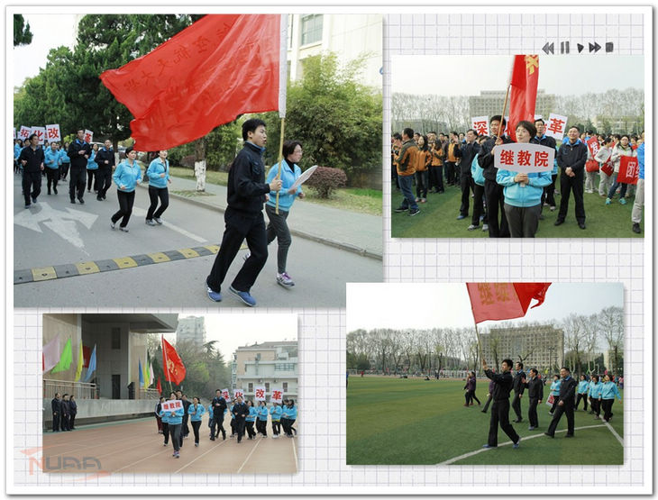 3月27日下午,南京航空航天大学明故宫校区举行第二十七届迎春长跑。 继续教育学院教职工按照指定的位置,4人一排,以饱满的精神状态,迈着矫健的步伐走进体育场。发令枪响后,学院领导跑在队伍的最前面。在“一、二、三、四”的口号带领下,大家的整齐的步伐发出了铿锵有力的共鸣声音,“深化改革 开拓创新”“超越梦想 继续飞翔”的口号,喊出了学院全体教工奋发向上、勇于拼博的精神风貌,喊出了大家对学院的期待及美好祝愿,每个教职工的脸上都洋溢着笑容,犹如杨朔散文《茶花赋》中孩子们的笑脸——童子面茶花开了。 迎春长跑结束后,学院被评为“优胜奖”。这已是继续教育学院连续第七年获此殊荣。“优胜奖”的获得,充分体现了学院领导对迎春长跑活动的重视,体现了部门工会组织全体教工积极参与的工作到位,更是学院教职工集体荣誉意识的充分体现。通过迎春长跑活动,大家享受着群体运动的激情,感受着体育健康的快乐,将“每天锻炼一小时,健康工作五十年,快乐生活一辈子”的理念落实到了行动。
