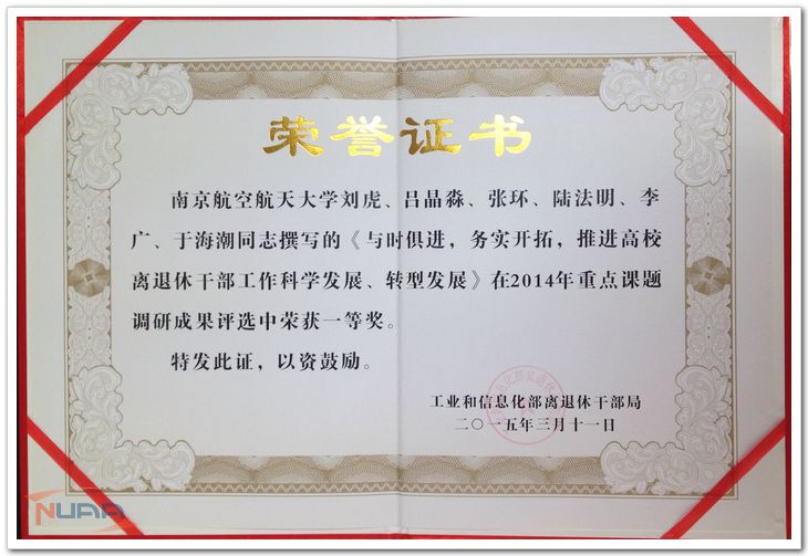 近日,工信部离退休干部局发文对2014年度部老干部工作优秀调研成果进行通报表扬,并颁发证书,以资鼓励。我校离退休处报送的三篇调研报告均获选为优秀成果。 2014年为贯彻落实全国老干部局长会议精神,推动老干部工作的转型,工信部离退休干部局组织开展了老干部工作重点课题调研活动。我校离退休处高度重视,按照文件通知精神,认真总结老干部工作的实践和经验,将调查研究作为新常态下谋划推动工作的重要抓手,深入开展新形势下老干部工作的研究和实践,分别以新形势下离退休干部工作转型、离退休干部党支部建设、老年大学建设为重点,完成了三篇调研报告。工信部离退休干部局共评选出了22篇优秀成果,我校离退休处报送的《与时俱进,务实开拓,推进高校离退休干部工作科学发展、转型发展》荣获一等奖,《加强新形势下高校离退休干部党支部建设的实践与思考》、《践行社会主义核心价值观·推动高校老龄教育事业不断发展》荣获二等奖。 ![]() ![]() ![]() |