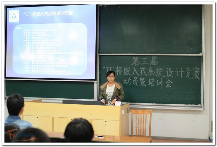 3月31号晚,南京航空航天大学第三届“TI”杯嵌入式系统设计竞赛动员暨选题指导会在将军路校区召开。竞赛组委会秘书、电子信息工程学院团委书记张晓燕及2014级辅导员冷阳参加了大会。 大会开始,主持人首先明确了本次竞赛的特色及宗旨,即: 自主创新,自由发展;着重基础,促进创新。随后,由张晓燕老师致辞。她首先对前两届比赛情况进行了回顾。她说, 过去两届嵌入式竞赛共有100余组选手参加,他们凭着浓厚的兴趣与实践热情,利用课余时间扩充知识储备,勤于思考,通过默契的团队合作取得了不错的成绩。所有作品很好的体现了“嵌入生活”的理念。在展望本届比赛时,她指出,本届比赛着重加强了选题方面的指导,希望同学们在前人的基础上不断创新,提升作品质量。她希望各个参赛团队内部能够精诚团结,展现出青年人该有的担当与激情,为建设创新型社会贡献力量。