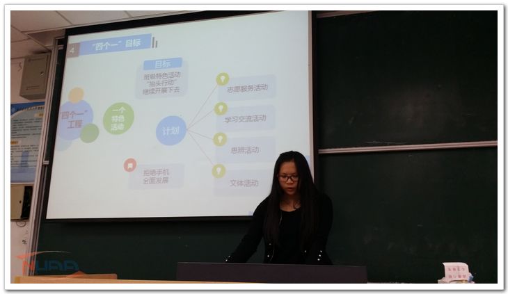 据悉,制定新年“四个一”目标管理规划是辅导员权璐老师在寒假前给各班级布置的寒假作业,“四个一”工作目标管理分别为:“形成班级的一项特色活动、实现整个班级的一个(或一组)数据、改掉班级存在的一项不足、班级最想获得的一项荣誉。”各班级于开学初提交了《0613级各班2015年“四个一”目标管理规划》,本次答辩会作为各班级“四个一”目标的开题答辩,预计后面还会进行中期和结项答辩,最终评选出目标管理优秀班级。