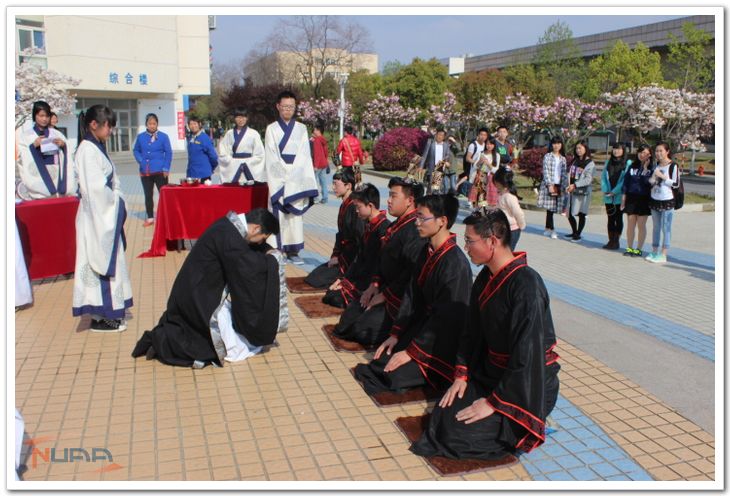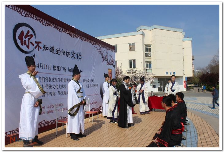 4月12日,集体成人冠笄礼和传统文化体验在樱花广场举办。现场,同学们身着古典汉服,进行庄重的成人礼仪式。此次仪式邀请到人文学院戴传江老师作为主人,艺术学院邱世鸿老师为正宾。从仪式前期的志愿者招募,到中期的培训,以及后期动作的反复纠正,每个细节都力求完美。同时,现场设有传统六艺“礼乐射御书数”互动体验区,让同学们切身感受传统文化的魅力。