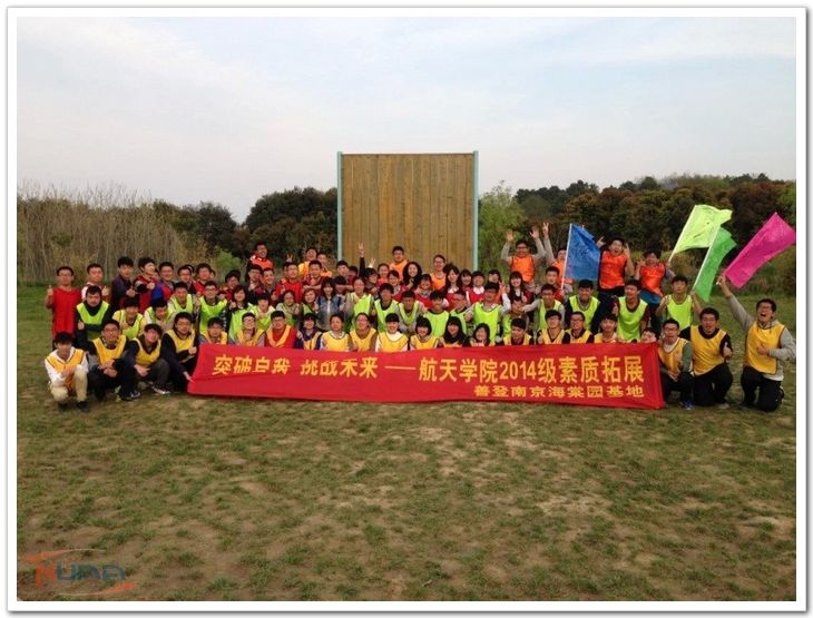 丛林枪战,高墙求生,这莫非是美国大片?天龙八部,飞檐走壁,这难道是武林大战?都不是,它们是航天学院2014级学生在素质拓展中经历的项目。2015年4月11日,航天学院14级学生在辅导员刘洁的带领下来到了善登南京海棠园拓展基地,共同参与了破冰起航、高空攀岩、真人CS镭战、极速60秒、信任背摔、求生墙等六个项目,体会团队合作,突破自我极限。 破冰起航,拉近你我 大家虽然同在一个学院,但平时交流比较少的同学相互间还不是很熟悉。于是教练首先把参加活动的88位同学围成一个大圈,让前后的同学互动。随后,“天龙八步”活动开始,大圆逐渐紧缩,前后同学也贴得越来越近,当教练说坐在后一位同学的腿上时,我们都惊呆了。但不做就有十个俯卧撑的惩罚,大家只得照做,并且又按照要求坐着向前走了八步。此时男女生相接的地方成为亮点,尴尬中带了许多诙谐。教练趁虚而入,想要把队伍冲散,团结的航天学院同学们紧紧靠在一起,坚如磐石,队伍依旧完整。