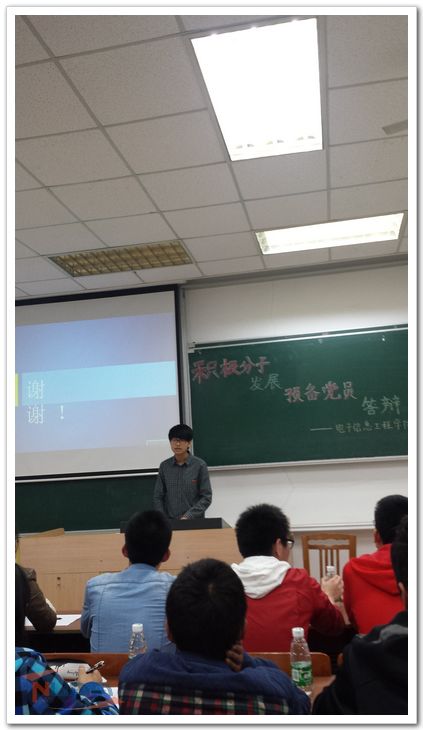 4月16日晚,电子信息工程学院2013级党支部举办的预备党员发展答辩会在将军路校区展开。本次答辩会到场嘉宾有电子信息工程学院2013级党支部书记、2013级辅导员周贞琪老师、副书记任汉珣同学、党支部其他全体成员以及30位大众评审。