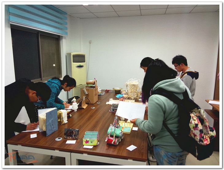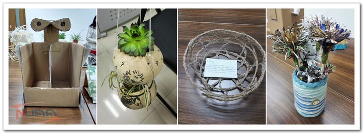 自3月26日大赛宣传开始,同学们通过微信平台以及宣传海报了解活动并积极参与报名,反响热烈。经过两周时间,选手们发挥创意,精心制作了别样的作品。工科生也有艺术感,他们可以用草稿纸、木筷造出设计感十足的鸟巢灯,可以用麻绳和浆糊制作充满田园气息的果篮,用废旧报纸杂志剪出绚烂花朵,把椰子壳变身小盆景,将易拉罐刮漆组合出直升机,利用牛奶瓶和废纸板奇妙拼装实用置物架,有散发着神秘气息的泡面盒制LED冷光灯,有鞋盒组合设计的“变形金刚”版小书架……比赛提交作品创意无限,应接不暇,让同学们为之惊叹!