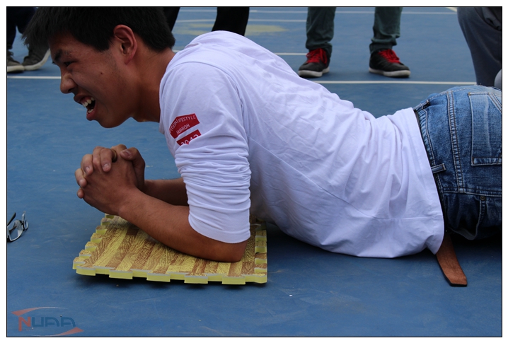 为了积极响应团中央关于“走下网络、走出宿舍、走向操场”的号召,4月18日上午9点,能源与动力学院2013级在将军路校区举办了第一届“趣味运动会”。 2013级200名学生及辅导员杨杰、廖光兰老师参加了活动。 本届趣味运动会以“团结拼搏·动力荣耀”为主题,年级中心组筹备组织工作,设置比赛项目有逃离地球,急速三分钟,稳若泰山,疯狂铭牌。各自然班以最终完成四个竞赛项目的累计总分获得名次,同时奖励单项优胜者。在逃离地球项目中,每班选出6名男生,来完成引体向上,以数量积分;急速三分钟项目中,每班选4男2女在罚球线外进行投篮,以数量积分;稳若泰山项目中,每班选3男1女,比拼平板支撑,以时长积分;疯狂撕名牌项目中,每班选2男1女,4个班级同时在指定场地内进行比赛,记录铭牌保留时间,以时间积分。
