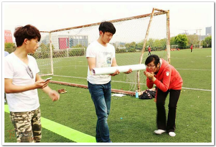 比赛当天,参赛人员依据提前划分的区域有秩序地进场热身参与比赛。初赛中,参赛者以接力的形式完成起指压板仰卧起坐,隔空抛物,指压板双人跳绳和稻草人拍球四个环节。各个团队在既定的游戏规则下,充分调动智商,相互激励与配合,不断尝试与努力,激发了大家的团队意识与竞争意识,让参赛的同学们感受到了青春与活力。最后,角逐出的十六支队伍进入到了第二天的复赛与决赛当中。尽管第二天天气状况不佳,但湿冷的天气抵挡不住同学们高涨的热情,在难点与趣味性都显著增强的比赛中,指压板平衡乒乓球、“让鞋子飞”、无敌风火轮……经历了重重困难与考验后,最终迎来了终极撕名牌大战。在最后的比赛中,参赛队员们不断加油打气,团队意识与竞争意识在这里体现了重要性,最后来自不同学院的三支队伍分获冠亚季军,为此次活动画上了圆满的句号,也让为这次活动辛勤付出的工作人员感到了满满的幸福感与成就感。