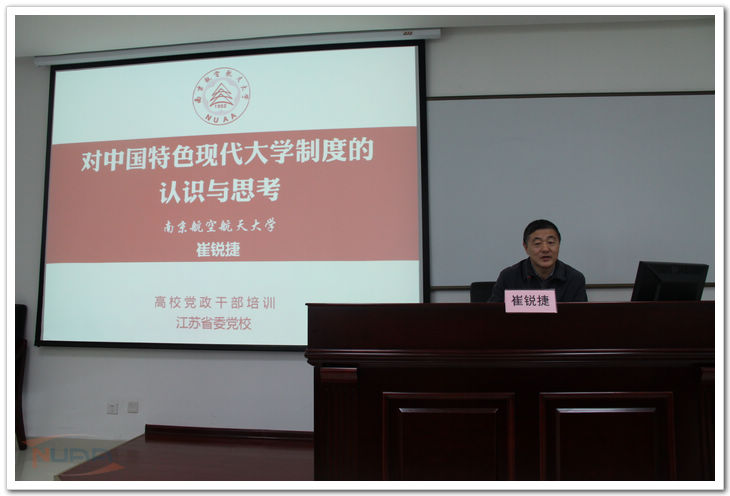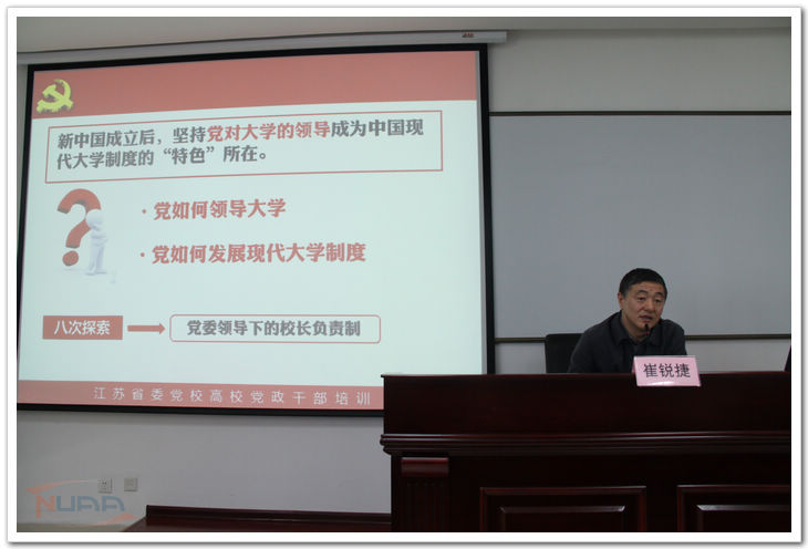 4月21日上午,应江苏省委党校之邀,我校党委书记崔锐捷为第14期高校党政干部培训班学员作了题为《对中国特色现代大学制度的认识与思考》的讲座。