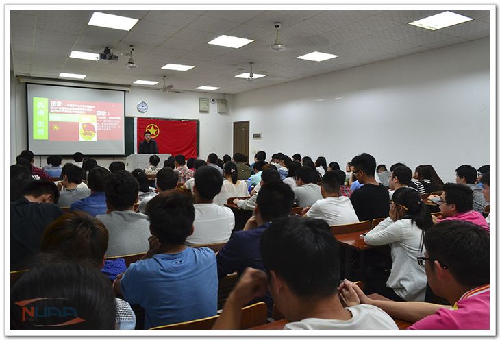 2015年4月27日, 继续教育学院团校第二期培训班开班典礼以及第一讲——书记讲堂,在A10号楼举行。学院党委副书记涂志宏出席开班典礼,院团委负责人、相关辅导员以及80名二期团校的学员参加了开班典礼。开班典礼由院团委书记黄超峰主持。 开班典礼在雄壮的国歌声中拉开帷幕。团校学员、学生会组织部副部长刘文琦同学宣读了团校纪律要求;接着在徐其利同学的领誓下,学员们面对鲜艳的中国共青团团旗,高举右拳,重温了入团誓词,庄严宣誓;黄超峰向学员们介绍了团的基本知识和学院共青团的基本情况。在奋发向上的团歌《光荣啊,中国共青团》歌声中,开班典礼圆满落幕。