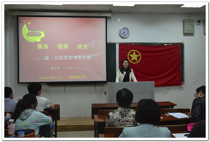 开班典礼结束后,院党委副书记涂志宏为学员们作了题为《服务 锻炼 成长——如何成为一名优秀的学生干部》的讲座。她以鲜活的实例,介绍了多名毕业生的成长故事,启发学员们领悟到一个称职的学生干部所必备的素质、能力和精神,表达出对学生干部的真切期望。讲座引起了学员们很好的反响,感到“收益匪浅” 、“很有意义”,加深了他们对自己人生发展的慎重思考。曾经在入学时与涂志宏有过一面之缘的学员卿婷同学给涂书记发去短信说:“开学报到时我一直在犹豫退学,结果正巧在食堂遇到你,你跟我说:留不留下来,不只是短暂的决定,……真正决定今后四年发展的是你自己的努力。……现在看来,留下来是对的,今天听完演讲之后,我更加清楚该怎么去度过今后的大学生活,老师,谢谢您” 。