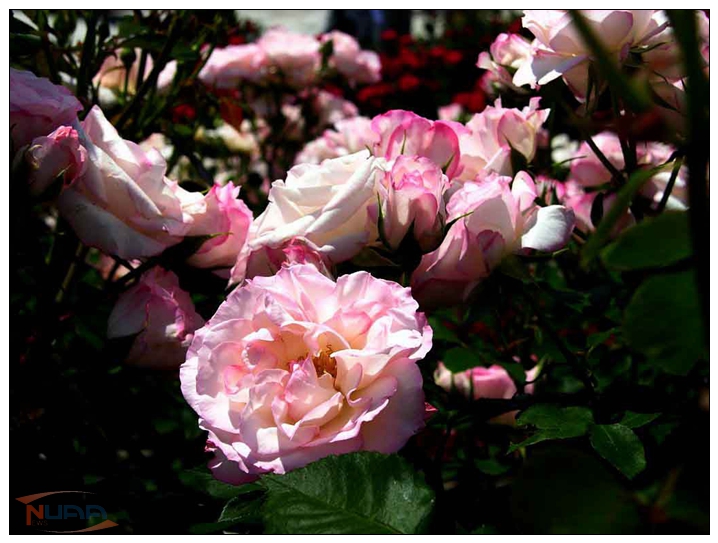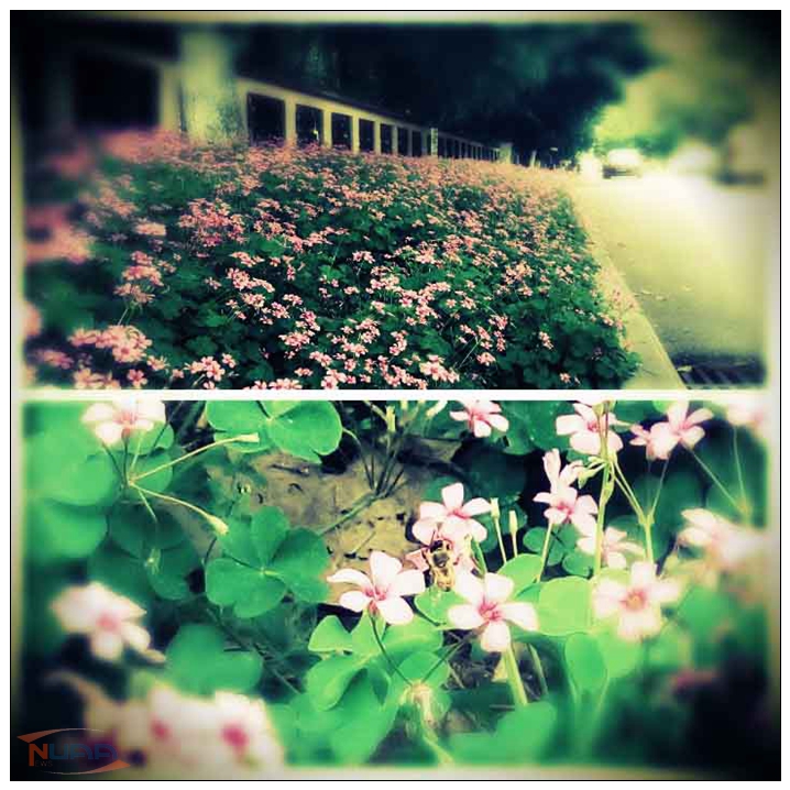 满了红花酢浆草与粉色蔷薇,绵延上百米,一路甜香,引来蜂蝶采蜜。