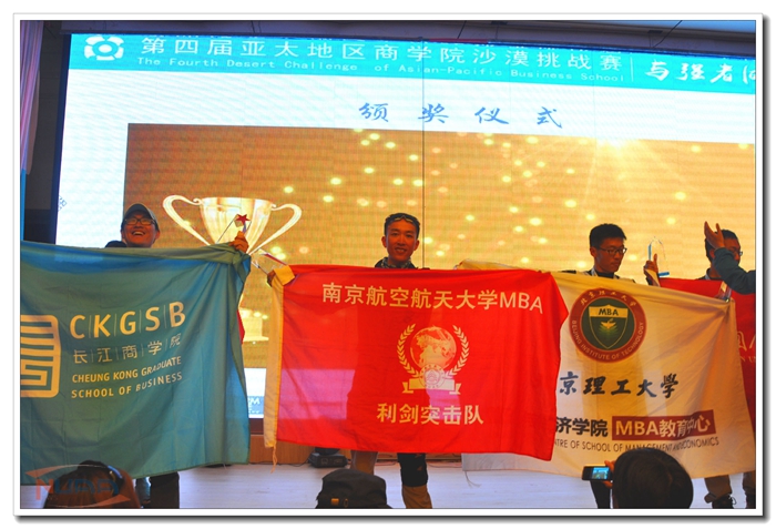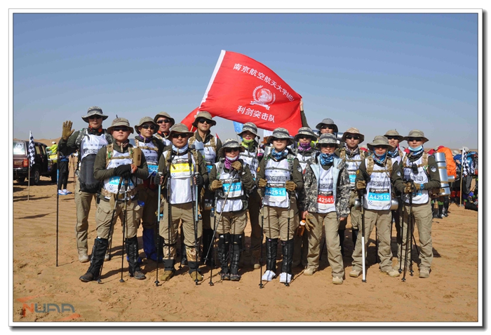 4月30日—5月3日,第四届“亚太地区商学院沙漠挑战赛”(简称亚沙赛)在内蒙古阿拉善左旗附近的腾格里沙漠举行。清华、北大、人大、复旦、新加坡国立大学、曼彻斯特商学院、台湾政治大学等49所亚太地区顶尖商学院的MBA精英组成参赛队伍,参加负重徒步穿越60余公里沙漠的竞技比赛。南航MBA“利剑突击队”斩获赛事最高奖项——“沙鸥奖”。 我校MBA首次组成“利剑突击队”参赛,全队17人,由12名参赛队员、3名观摩队员、1名随队记者和1名带队老师组成。参赛队员来自南航MBA10、11、14、15等多个年级,横跨重工、贸易、法律服务、百货、旅游和政府公共机构等多个行业,并覆盖到淮安、南通等地校友。队名取意于“倚天长剑”,队徽以地球、橡树叶以及东风—15导弹储运发射车为主要图案,彰显南航大航空、航天、兵装的培养特色,也蕴含着南航MBA“志在长空、迅捷雷霆、勇攀高峰”的利剑精神。经过近8个月的编组、培训和近800公里拉练,所有队员熟悉了解沙漠气候环境、比赛规则,具备良好的身体素质和团队精神,全队士气高涨,在安全完赛的基础上争取到了较好的名次。在本届赛事新增的7支正式参赛和观摩院校队伍中,南航MBA“利剑突击队”是唯一一支获得赛事最高奖项——“沙鸥奖”的队伍。