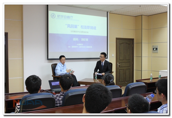 5月14日晚,由航空宇航学院承办的航宇会客厅之“凤回巢”校友说活动在明故宫校区18号楼526教室顺利举行。本次活动专门邀请到了我校飞行器设计专业03届毕业生刘伦德先生,现任GE(通用电气)航空系统工程部经理(Aviation China Engineering N&MSE Manager)作为主场嘉宾,也吸引了航空学院众多16届准毕业生的积极参与。