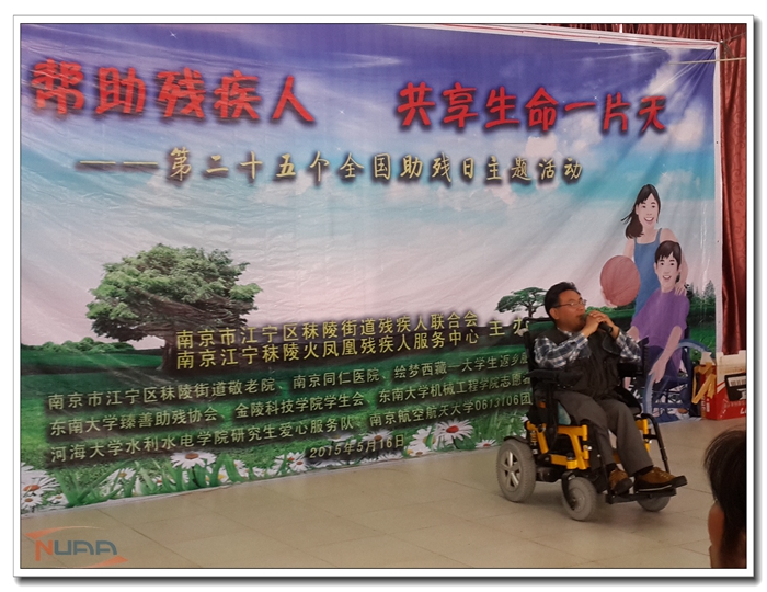 5月16日为迎接第二十五个全国助残日,宣传中国助残服务理念,宏扬志愿服务精神,材料学院0613106团支部与火凤凰助残中心走进江宁区秣陵街道,举行了一场名为“关心帮助残疾人,共享生命一片天”的全国助残日主题活动。参与此次活动的高校还有南京同仁医院、河海大学水利水电学院研究生爱心服务队、绘梦西藏——大学生返乡服务团、东南大学臻善助残协会、东南大学机械工程学院志愿者协会、金陵科技学院学生会。
