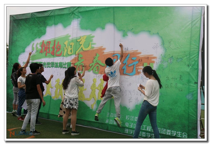 5月17日下午,由校团委主办、电子信息工程学院与理学院承办的第十四届“明御·翠屏”校园青年文化节之“拥抱阳光,青春同行”阳光伙伴体育比赛在我校将军路校区西操场举行。来自全校各学院的16支队伍、近400名同学参与本次比赛。参加本次活动的嘉宾有电子信息工程学院党委副书记王伟华老师、理学院党委副书记王静老师、校团委代表、各院团委书记和辅导员老师们。 开幕式上,舞龙队和啦啦队的精彩表演成为本次比赛的第一个亮点,他们的精彩演出赢得全场观众的热烈掌声,点燃了现场的气氛。随后,在各院参赛团队的入场展示中,同学们口号整齐响亮,团队展示别出心裁,充分展现了各学院、各团队的风采,给大家留下了深刻印象。