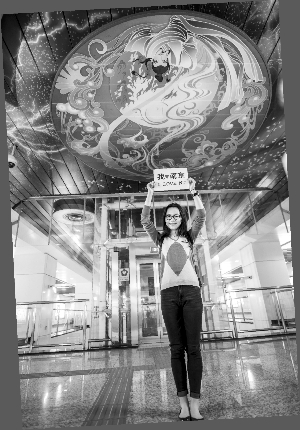 想和地铁合影留念,老教授帮她拍