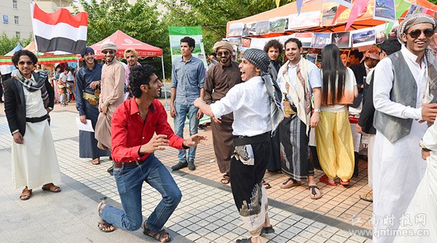看几场充满部落风情的民族舞蹈,尝一尝外国友人制作的美食,还可以试穿上一两件异域风情的服饰……5月22日下午,由南京航空航天大学国际教育学院举办的——“异”彩“留”光第二届世界民族文化节吸引了众多师生在樱花广场驻足,20多个国家和地区的留学生们带来了民族歌舞表演、服装展示、美食展示、乐器演奏等25个演出项目,为师生们带去了一场视觉、听觉、味觉盛宴。 尼泊尔歌曲、泰国风情舞蹈、印度传统歌舞……20余个国家的同学们,都不约而同的准备了具有本国特色的歌舞展示。“没想到留学生们各个能歌善舞!”在台下看表演的一名同学惊叹到。不仅如此,一名哈萨克族小伙还带来了他们民族传统乐器——冬不拉的演奏。 “这是来自我的家乡也门的特制肉桂茶,欢迎品尝!”一位说着流利中文的也门留学生热情的说。美食区总是能吸引大批的“吃货”围观,“我们快去那边看看,那有好多好吃的!”一名女生明显有点小兴奋。美食展示区,厨房炊具一好应俱全,擅长烹饪的留学生们为大家带来了异域美食。 “这是伊斯坦布尔,我的家乡。”一位来自土耳其的留学生介绍到。“照片里是我在新德里和我的家人一起。”印度小伙也热情的介绍。在图片展示区,海滩美景、古代建筑、热带雨林,各式各样新奇的美景应有尽有。留学生们纷纷拿出私人珍藏的关于家乡风土人情、旅游胜地的照片,让中国的小伙伴们一睹远在千里之外的异国美景。
