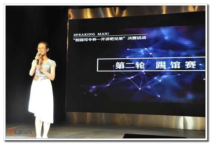 5月22日晚7点,民航学院“开讲吧,兄弟!”决赛在将军路校区大学生活动中心举行。担任本次决赛评委的有人文与社会学院副院长邱建新教授、江苏省广播电台编辑“舌战金陵”最佳辩手胡俊立老师、校辩论队前队长马晨晨和民航学院13级辅导员康冲老师。 炫酷的开场视频拉开了本次比赛的帷幕,选手的风采照片一一划过,让在场的观众们眼前一亮。随后,主持人邀请康冲老师作开场致辞。在康冲老师的一句“你讲,我听!”之后, 比赛正式开始。首轮比赛为三分钟限时演讲。选手们的选题风格迥异,温嘉铭同学从自己父亲的亲生经历出发,用理性的思维与观众们分析了当下时代巨轮下的危机,李方同学与分享了爷爷李铁人与奶奶温情的故事,让现场的观众们为之动容。十三位选手各显身手,引起台下观众的阵阵欢呼。 本次决赛的一大亮点就是第二轮的神秘嘉宾踢馆赛。踢馆赛的预设场景为电视购物。实力踢馆选手赵晶成功推销自己的眼镜,她以精彩的表现战胜了自己选定的踢馆对象,成功晋级第三轮比赛。比赛的最后一个环节为即兴演讲,成功晋级的7名选手从9张话题卡中随机挑选话题。选手郑丽君抽中“女神与女汉子”的话题卡,她从自身谈起,向在场的观众表达了自己的观点,只要心灵美女汉子也可以成为女神。即兴演讲结束后,7名选手再度登台,接受4位专业评委和20位大众评委的投票。最终来自二专业的赵晶选手凭借自己出色的表现获得特等奖。