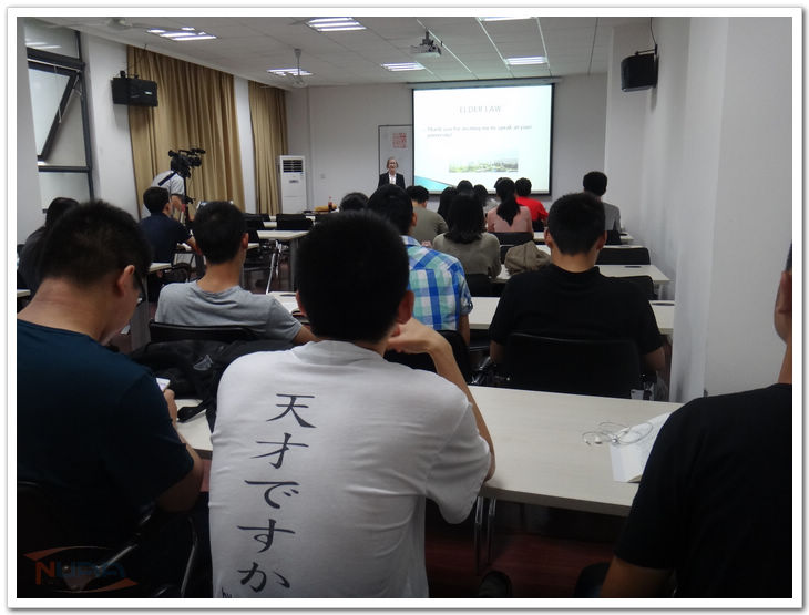 Murphy教授在第一场关于美国老年法的讲座中,分析评述了美国虐待老年人的三种情况及其相应立法,并从比较文化的视角对中国老年人的保护问题提出几点思考。她还以亲身经历向同学们说明了法律的魅力与法制的力量。