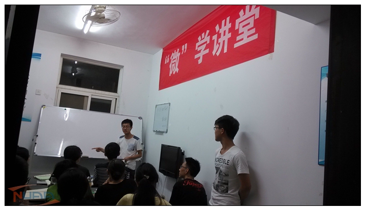 这两次“微”学讲堂的主讲人均来自0713303班,有成正强、邰俊飞、刘纯和黄帆等同学。由于场地限制,听课的同学人数为10人左右。现在参与的方式是抢票方式,名额有限,先到先得。事实上第二次报名开始不到10分钟,票就没有了,可见同学们对这样的“微讲堂”的需求之迫切。