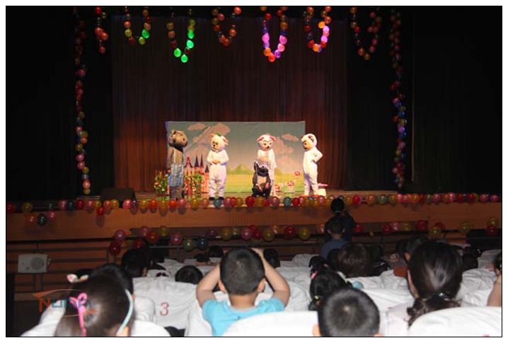 “经典童话剧进校园”活动启迪幼儿的智慧,培养幼儿的想象力和创造力。5月29日,在大礼堂举行了六一暨幼儿科技节活动的庆祝活动。李民惠园长发表了热情洋溢的讲话,为全园的小朋友们送上最亲切的问候和祝福,并向工作在一线的老师们和家长们表示亲切的慰问。童话剧演出在园长的致辞中拉开了序幕。“吉林省话剧团”来园为孩子们带来了一场妙趣横生、寓教于乐的童话剧表演。整台节目童趣盎然,精彩纷呈。 这次剧团带来了《七色花》、《善良的小灰灰》和《皇帝的新衣》这三个孩子们喜闻乐见且耳熟能详的童话剧。随着音乐的响起,小朋友们被一个个富有情节的故事所吸引,仿佛身临其境。尤其是《皇帝的新衣》给孩子们留下了深刻的印象,演员们生动的语言、夸张的肢体动作、契合的混音效果,一个个活泼可爱的造型深深地吸引了孩子的目光,拉近了孩子们和剧中人物的距离,在有趣的故事中,孩子们感受着真善美;在生动的讲述中,孩子们领悟了故事情节的教育意义,达到了很好的互动效果。童话剧表演在孩子们阵阵掌声中落幕了,但剧中的情节却久久回荡在孩子们的心中。