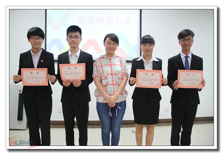 换届仪式第二项,主持人宣读了换届的名单,并分别由张晓燕、丁亮、周贞琪、冷阳老师给新任的各个组织的主席团颁发了聘书。