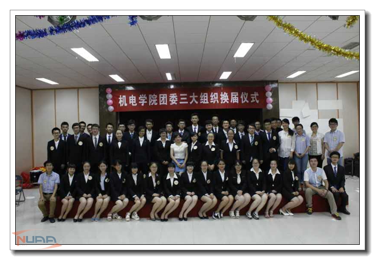 6月12日晚,机电学院团委学生会、青协、科协三大学生组织换届受聘仪式在将军路校区艺术中心多功能厅顺利举行。院团委书记成杰、13、14级本科生辅导员、各组织新成员集体着正装参加了本次受聘仪式。 仪式开始,院团委书记成杰老师致辞,成老师表达了对新一届学生干部的期望以及对各部门工作开展的期许,并特别强调,在新的一学年里,各级学生干部要以身作则,不拼时间拼时效、不靠个人靠团队,以高热情、低姿态投入到学生干部工作中,做好同学的表率。接着,主席团成员及三大组织各部门的部长及副部长依次上台接受聘书,主席团的同学们作为学生代表,现场分享了自己的学生干部工作感悟。最后,全体到场师生合影留念。