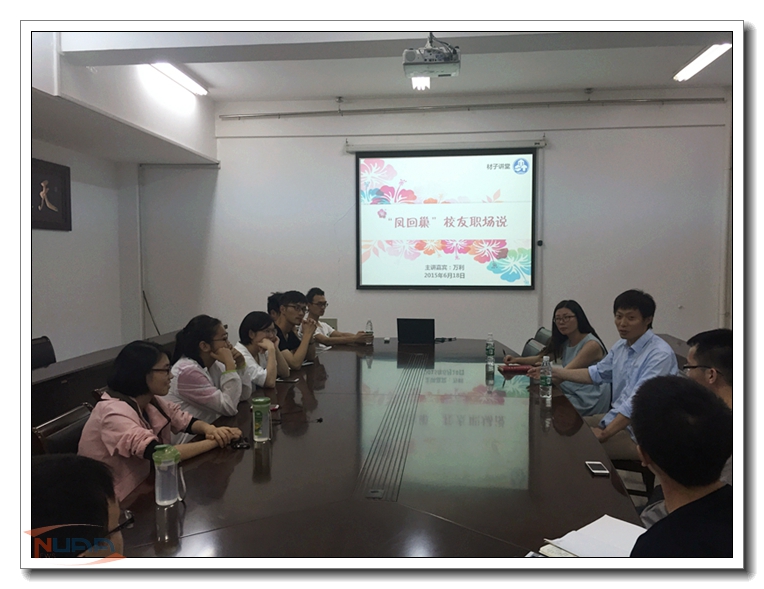 此次交流会,万利学长在求职意向、面试技巧、职业规划等方向进行了详细分析与指导,在场的同学都受到了很多启迪,“凤回巢”校友职场说的活动为在校同学与行业精英的学长学姐之间的交流搭建了良好的桥梁。