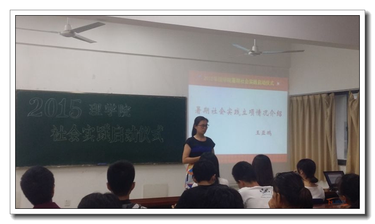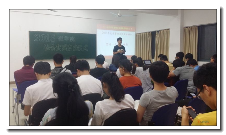 6月27日,理学院在将军路校区举办“2015年暑期社会实践活动启动仪式”,学院团委书记王亚鹏、辅导员卢逸、各实践团团长、宣传员参加了本次活动。 启动仪式上,王亚鹏首先对学院社会实践立项情况进行了介绍。今年学院共申报团队类项目32个,针对性地选拔出17个项目作为重点扶持,重点跟踪。院学生会主席王美玲发布理学院社会实践LOGO。一个坐标轴样式的图案,轴由火炬与质能方程组成,红色的火炬代表实践热情,质能方程体现了理学院特色,其蓝色的底色代表同学们的奉献精神。社会实践的队服与口号也相继发布,让人耳目一新。“巢湖蓝藻治理”、 “坚守 反哺支教团” 、“i.e科普小站”团队负责人分别分享了所负责项目的实施计划、前期经验等。其中,曾获多家媒体报道的“i.e科普小站”团队,在核心活动“校园科普行”的基础上,增加了“爱益科普支教”,“航模创意工坊”,“超市科普行”等活动,丰富的活动让同学们备受期待。启动仪式还邀请到了校宣传部的学生骨干为大家开展新闻宣传方面的培训。最后,王亚鹏为社会实践团队进行授旗,全面拉开学院2015年暑期社会实践的帷幕。