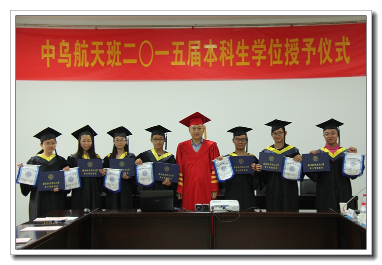 7月3日下午,我校中乌航天班2015届本科生毕业典礼暨学位授予仪式在明故宫校区A3-318会议室举行。学校教务处处长王成华、国际合作交流处处长金泉元、国际教育学院院长何宁、宣传部副部长孔令华、研究生院副院长王亚彤、学生处副处长许爱华等职能部门领导以及航天学院院长陈卫东、院党委书记季海群、副院长王海涛出席仪式,中乌航天班2015届毕业生以及2013级中乌航天班部分同学参加了仪式。仪式由航天学院党委副书记李和新主持。 中乌航天班是由南京航空航天大学与乌克兰哈尔科夫国立航空航天大学联合开展的双学历教育,于2007年首次招生,至今已有五届毕业生学成归国。会议伊始,李和新代表学校师生对各位同学学成归来表示热烈欢迎和祝贺。 2015届中乌航天班班长杨东林同学代表全体中乌班学子向母校汇报,同学们面对动荡不安的乌克兰局势和繁忙充实的学习课程,自立自强,积极进取,学习上刻苦认真、一丝不苟,生活中团结一致互相鼓励,在困难的环境下不断进步成长,最终顺利完成学习,安全返回母校,并代表2015届全体中乌班同学对社会各界的关心,尤其是对学校、学院领导和老师的关怀支持表示诚挚感谢。 本届中乌班的全体学生以流利的俄语完成了毕业答辩,乌克兰校方已为他们颁发了学位证和毕业证。回到南航后,一场规模虽小但很正式的学位授予仪式让同学们倍感兴奋,他们穿上学士服,戴上学位帽,从陈卫东教授手中接过学位证,这一刻,令现场所有的师生倍感欣慰。会上,职能部门领导还为15届中乌班同学们颁发了2013、2014两个学年的获奖荣誉证书。 陈卫东院长对本届毕业班学生能够在课程学业负担重、外部环境复杂情况下,仍然能够保持积极良好心态、彼此鼓励、共同圆满完成学业的精神和行动表示赞许和肯定,并勉励他们继续努力,继承和发扬南航学生的优良品质,珍惜来之不易的学习机会,立志航天,锐意进取, 再创辉煌,为母校争光。 国际合作交流处处长金泉元对中乌航天班同学的学成归来表示欢迎,希望2015届毕业生能够保持俄语学习、夯实专业基础,积极参与目前南航多项合作办学项目继续深造;同时,结合自身外出求学的经历勉励即将出国的同学珍惜出国机会,并对在外求学安全等事项进行了悉心的讲解。 同学们表示将坚定报国之心,树立远大志向;坚持学习,继续努力,以更优异的成绩回报母校。授予仪式结束后,中乌航天班学生与在场的领导、老师一起合影留念。 ![]() ![]() ![]() ![]() ![]() |