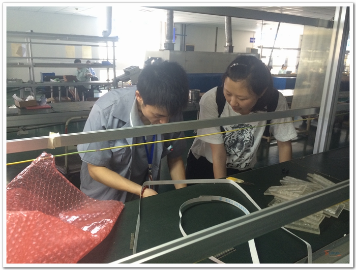 2015年7月10日,南京航天航空大学电子信息工程学院大三年级40余名学生来到南京长江电子集团雷达装联部进行生产车间的实习。 这天是同学们在车间体验的第三弹,进门之前,车间主任仍是很细心地给每个人分配了鞋套和防静电手腕。进去后,大门的左边有一个静电手腕测试仪,测试每个人的防静电手腕是否正常工作,若是手腕出现问题,不能良好地接地,会导致电路板被击穿,由此可见,南京长江电子集团很重视安全问题。车间的卫生环境也非常好,生产车间的地光滑如新,每天早上保洁人员都会用防静电的蜡油擦洗地面。正是由于这样安全干净的环境,大家的工作积极性才会更高。