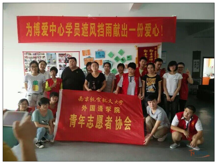 暑假期间,南京航空航天大学外国语学院青年志愿者协会在全校范围内招募志愿者,在南京博爱勤善残疾人服务发展中心进行了为期一周的志愿者活动。此次活动招募到了来自外国语学院、自动化学院、民航与飞行学院、计算机与科学学院共19名志愿者。 博爱中心的学员们因先天或者后天的意外,存着心里或者智力方面的缺陷,他们中的有些人曾流浪街头,有些人曾不愿出家门一步。他们居住在社会的边缘,渺小而奇特的存在。他们无法正常地走在车水马龙的街上,无法自信地出现在人群面前,甚至连一丝小小的动作就会遭到他人的蔑视。他们也是人,却因为先天或者后天的智力和心理残疾,游走在社会的边缘得不到社会的注目。