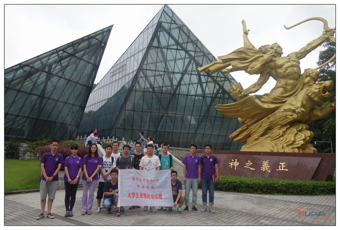 7月11日,社会实践服务团按照既定路线来到了江苏南京航空烈士纪念馆。作为航空院校的学子,对于航空,队员们应有一个更深刻的了解。在这里,社会实践小队与南开大学社会实践小队相遇,他们相互介绍并进行了交流,对彼此的社会实践主题做了对比,两社会实践小分队交谈的十分融洽。在自由之神左面的展馆内,共展有四部分内容,分别是:“奋勇抗战”、“国际援华”、“凌云壮志”、“缅怀先烈” 。社会实践服务团的成员循着参观路线往前走,开始了航空纪念馆的探索历程,希望能从这片纪念馆里感受那些记忆,看看那些人那些事,怎样感动着现在的人们。航空救国,向英雄的航空烈士致敬!作为航空院校的学生,团队成员对抗战时期的航空水平做了大致了解,在参观中感悟了许多,相信结束这次参观之后,他们会更加懂得航空事业的重要性,懂得国防事业的重要性!